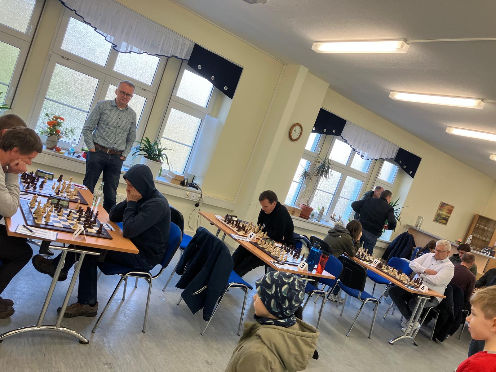 Unsere 2.Mannschaft musste in der 1.Bezirksklasse zum Gastspiel nach Bernsbach und tat sich ziemlich schwer. Da an diesem Spieltag Frank und Volker nicht ihren besten Tag erwischt hatten, lagen wir relativ schnell im Rückstand. Die anderen Bretter mit Lukas, Gerd, Bert und Sebastian konnten leider nicht mehr als Remisen beitragen. Damit war es an Tilo, den Anschlusstreffer zu markieren. Damit stand Jens beim 3:4 Zwischenstand unter Erfolgsdruck in einem ausgeglichenen Endspiel. Und er knetete ala Magnus Carlsen Wasser aus Stein (sein Gegner hatte den falschen Plan) und sicherte uns mit dem Ausgleich zum 4:4 wenigstens einen Mannschaftspunkt. So bleiben wir weiterhin Tabellenführer, aber nur noch mit 4 Brettpunkten Vorsprung. Aber noch haben wir den Aufstieg in der eigenen Hand.