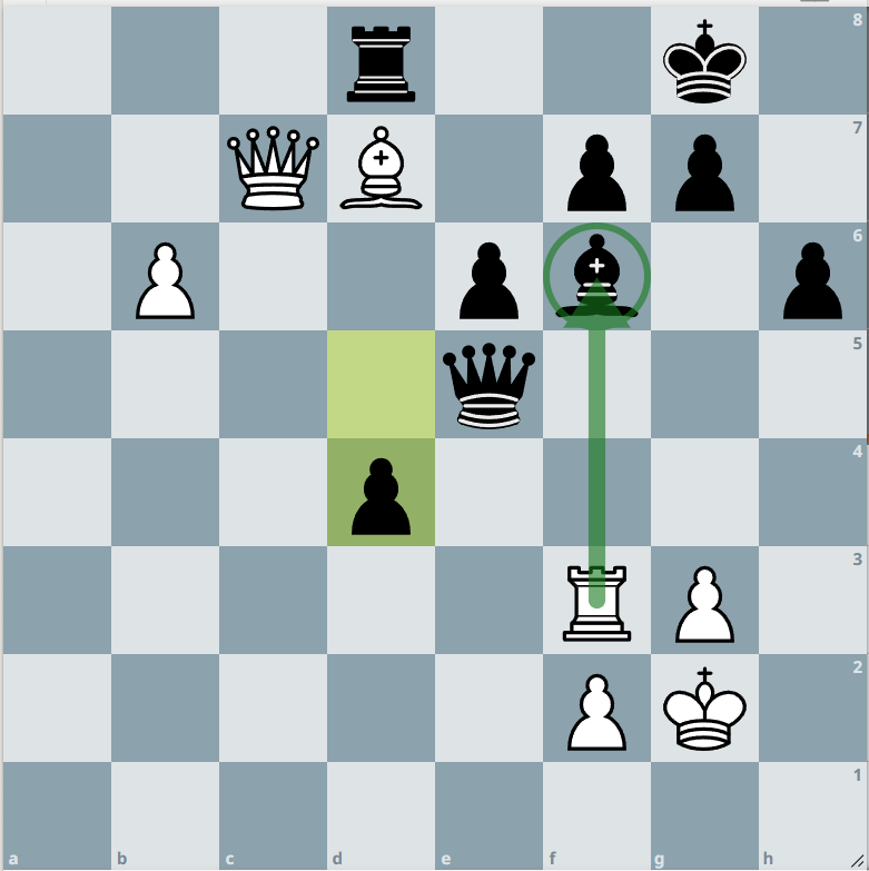 Das hier war die letzte entscheidende Situation in dieser Partie. Schwarz hatte gerade den Bauern nach d4 gespielt und Weiß eine ekelhafte Falle gestellt. Wenn Weiß hier der Verlockung ausweicht und den Damentausch mit 58. Dc6 nicht zulässt, gibt ihm der starke b-Bauer wahrscheinlich genug Gegenspiel. Schöni sah die interessante Idee, dass nach Txf6 das Zurückschlagen auf f6 verliert. Er sah auch, dass Schwarz eine starke Widerlegung hatte ... nur ließ er sich mangels Zeit eben darauf ein: 58. Txf6 Dd5+! 59. Tf3 Dxd7 und damit hatte uns Leipzig besiegt.